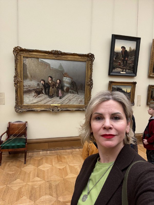 Добры день, дорогие подписчики! 🌺 🖼️ Я сейчас нахожусь в Третьяковской галерее и за моей спиной картина великого русского художника Василия Перова «Тройка». Это полотно потрясает своей глубиной и и