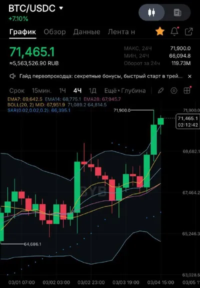 🤑 Биткоин совершает рывок! Впервые с начала февраля главная криптовалюта подобралась к отметке $72 000. Неплохой результат после затяжной коррекции, не так ли? Актуальные курсы криптовалют