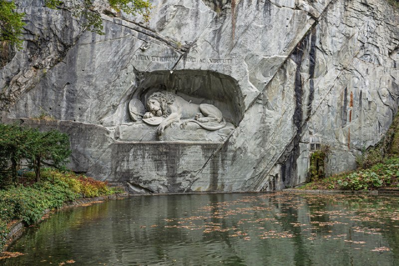 Умирающий лев: Каменный крик швейцарских гвардейцев 🦁 Среди отвесных скал швейцарского города Люцерн скрыто поразительное произведение, которое писатель Марк Твен однажды назвал «самым грустным и тр