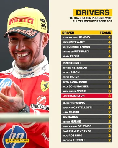 Благодаря третьему месту в Китае, Льюис Хэмилтон вошёл в очень небольшой клуб пилотов, которые поднимались на подиум во всех командах, за которые выступали. У Льюиса теперь таких команд три. Понятно,