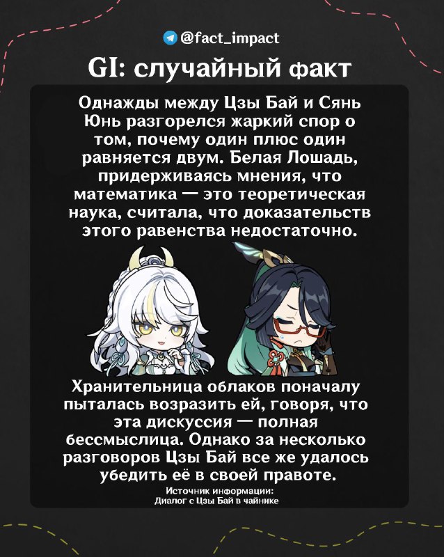 ИгрыПрисоединяйся! Вместе с нами Тейват интереснее! 🧩 Факты по ХСР: @fact_honkaistarrail Админ, по важным вопросам: @andreyroit