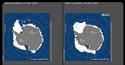 Любопытная история: в Антарктиде в декабре 2024 года льда на 17 процентов больше, чем в декабре 1979 года. • Это к вопросу о глобальном потеплении, конечно. @Fact_Interes