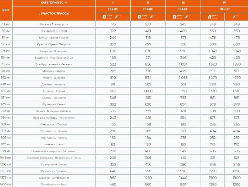 "Автодор" опубликовал новые тарифы на проезд по трассе М-12 в Нижегородской области Напомним, цены на проезд были подняты с сегодняшнего дня, 2 марта. Проезд от Москвы до Казани обойдется владельцам