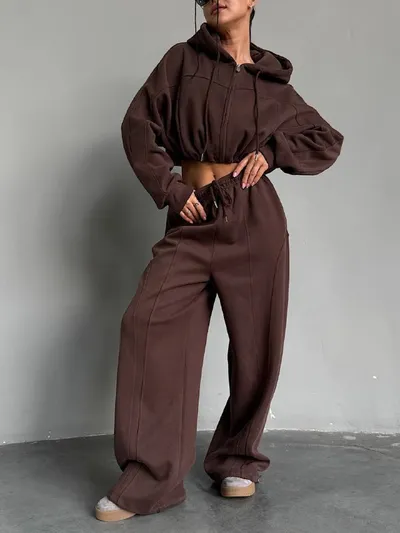 Новый тренд-2026💅🏼 Костюмчики без флиса ✂️ С кулисками на зипке и брюках 👌🏻 Mode in Korea 🇰🇷 Цена шт: 2000 ₽ Цена опт: 4•1800₽ Размер: 42-48 One Size Материал: Футер трёх нитка Заказ: 💬 T