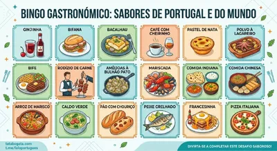 Ко мне в гости впервые приехал брат со своей женой, и я составила для них гастрономическое бинго - в нём собрала всё, что я считаю надо попробовать в Португалии. Тут не только португальское, потому ч