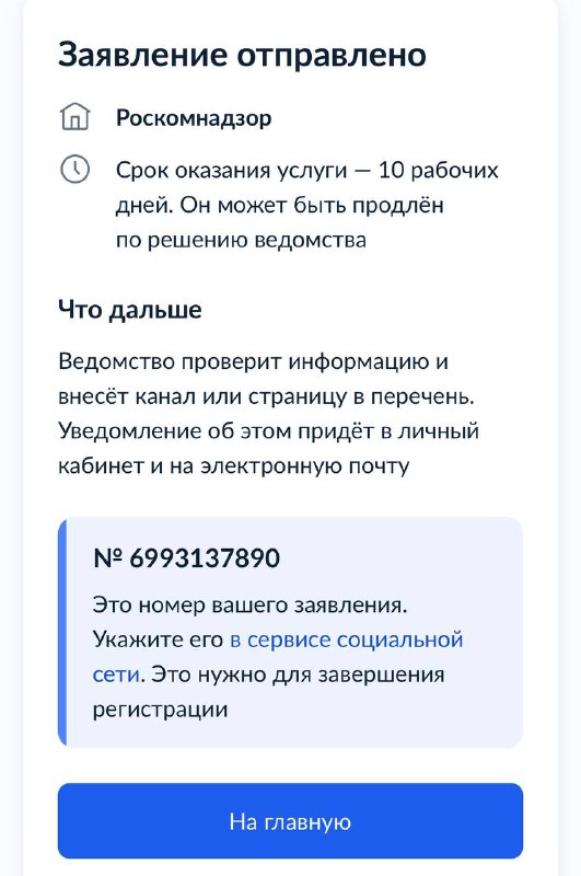 Номер 6993137890. Подала заявление на регистрацию канала в РКН. Кто-то из коллег-блогеров «словил панику» - я надеюсь 🤞 на лучшее :) Временный пост. Совсем скоро будут ПОЛЕЗНОСТИ 😘