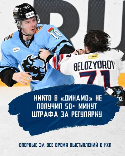 🦬😵💫Впервые за всю историю выступления «Динамо» в КХЛ в команде нет ни одного игрока, получившего более 50 минут штрафа за регулярку На данный момент самый «грубый» хоккеист команды – Николас Мело