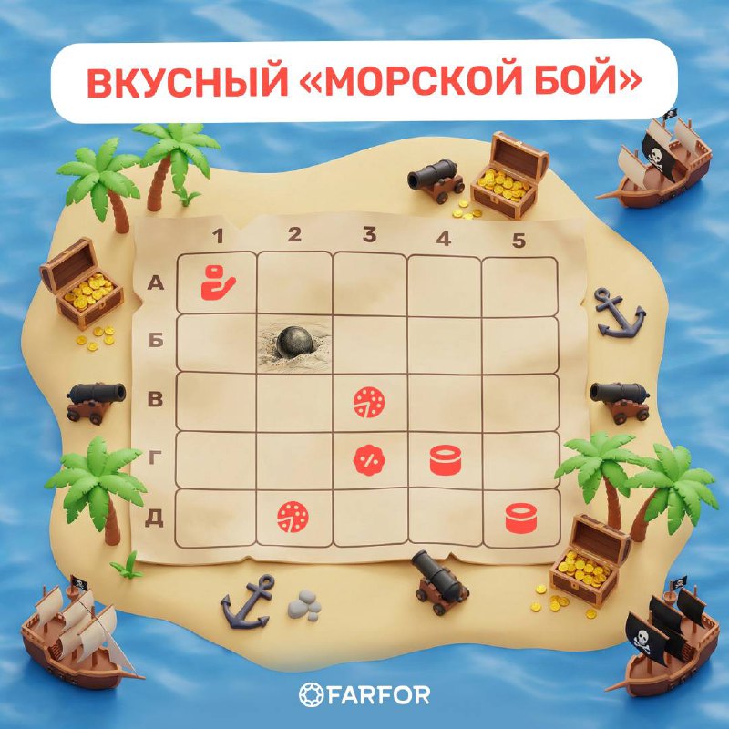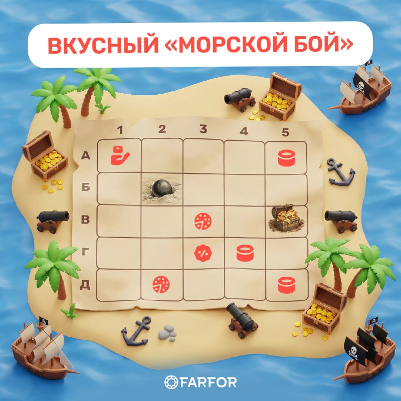 💥 Ещё два точных залпа — и снова два трофея на борту! Вы открыли две ячейки (А5 и В5), и за ними — два призовых промокода, один из которых оказался крупным призом! 🎁 Супер промокод* 27166 — пицца