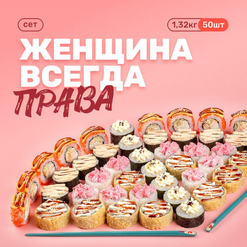 👩🦰 Спорить с женщиной? Смело. Но зачем, если можно заказать роллы? Поэтому план простой: не спорим, не усложняем, заказываем сет «Женщина всегда права» и быстро закрываем вопрос с ужином 😉 А что