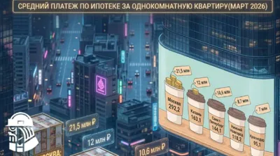 ✅ Ипотечный платеж за «однушку» в Москве взлетел до 292 тыс. рублей ➖ В марте 2026 года средний ежемесячный платёж по рыночной ипотеке за однокомнатную квартиру в новостройке в 16 городах-миллионника