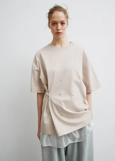 А вот и футболка для настоящих любительниц экспериментов! Увидела у Sela модель с кнопками, благодаря которым можно делать интересную драпировку. Если такая суета не для вас, то у Befree есть уже го
