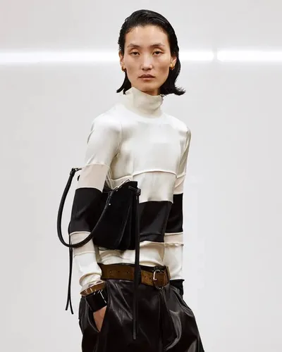 А еще на вчерашнем показе Bottega Veneta была замечена наша русская модель Дария Даниленко из Select Management. На подиуме она появилась в выразительном монохромном образе: черном асимметричном наря
