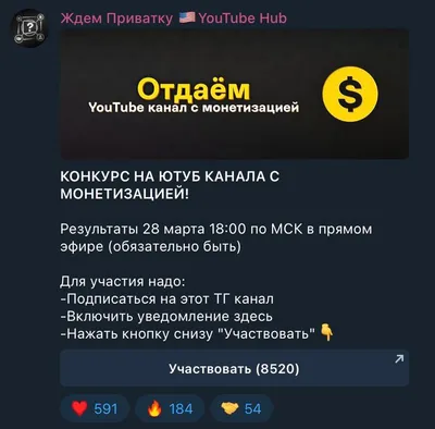Отдаем монетный канал, на котором уже можно зарабатывать с просмотров 28 марта в 18:00 по МСК подведём итоги в прямом эфире👀 Конкурс и кнопка для участия здесь: https://t.me/+uKdSggZZwKVhN2Ji