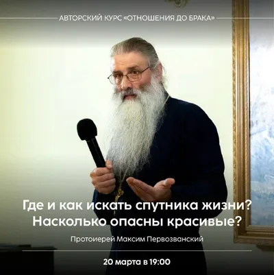 Приглашаем поговорить об отношениях до брака вместе с протоиереем Максимом Первозванским! Где и как искать спутника жизни? Насколько опасны красивые? 🗓️ 20 марта (пятница) в 19:00 Где сегодня вооб