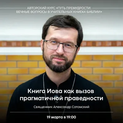Приглашаем на новую лекцию священника Александра Сатомского в рамках курса «Путь Премудрости: вечные вопросы в Учительных книгах Библии». Книга Иова как вызов прагматичной праведности 📅 19 марта (ч