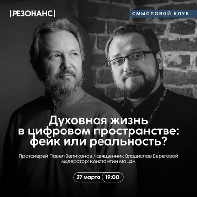 Приглашаем на встречу смыслового клуба «Резонанс» с протоиереем Павлом Великановым и священником Владиславом Береговым! Духовная жизнь в цифровом пространстве: фейк или реальность? 📅 27 марта (пятн