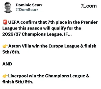 Седьмое место в АПЛ по результатам текущего сезона может дать путевку в Лигу Чемпионов, если: 1. «Астон Вилла» выиграет Лигу Европы и займет пятое или шестое место в АПЛ. 2. «Ливерпуль» выиграет Лигу