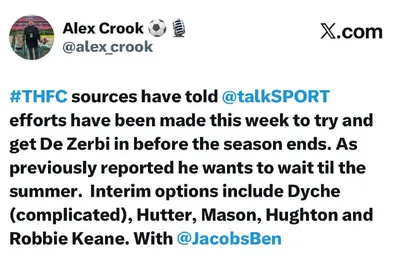 Игор Тудор уволен. «Тоттенхэм» хочет, чтобы Де Дзерби возглавил команду уже сейчас. В качестве временного кандидата (чисто до конца сезона) рассматривают Дайча, Хюттера, Мэйсона, Хьюстона и даже Робб