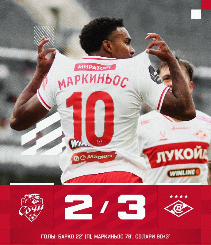 ❤️🤍 ЕСТЬ! «CПАРТАК» ПОБЕЖДАЕТ В СОЧИ! 2026 год начинаем с первой победы Карседо и трех очков.