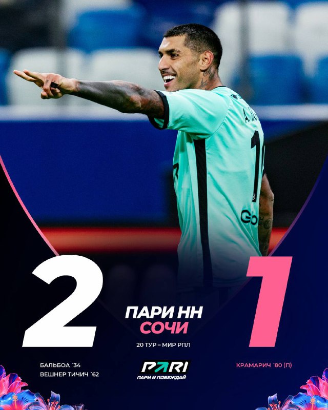 ⏺3⃣2⃣↙Дебютный мяч Рокки Бальбоа за « Пари НН» Отличный розыгрыш стандарта! Браво, парни! #ПариННСочи| 🇷🇺1⃣➗0⃣🇷🇺
