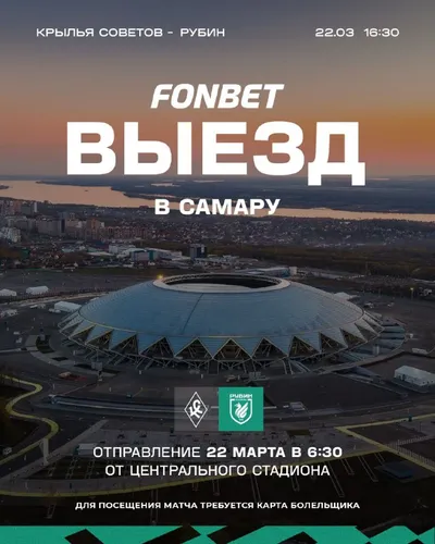 FONBET-ВЫЕЗД В САМАРУ! 👏🤝👍 Футбольный клуб «Рубин» совместно с нашими друзьями из Fonbet организует автобусы для болельщиков на матч с ФК «Крылья Советов», который состоится 22 марта в 16:30 на ст
