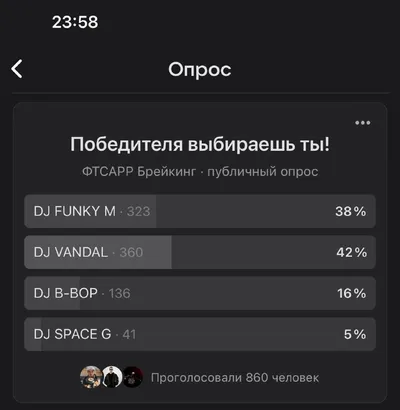 Завершился наш конкурс диджеев BREAK DJ BATTLE 2026 ❗️ 860 человек приняло участие в голосовании! 🏆 Победителем по мнению судей становится DJ B-bop - Омск/Спб (Junkies Crew) 👏 Он станет одним из пр