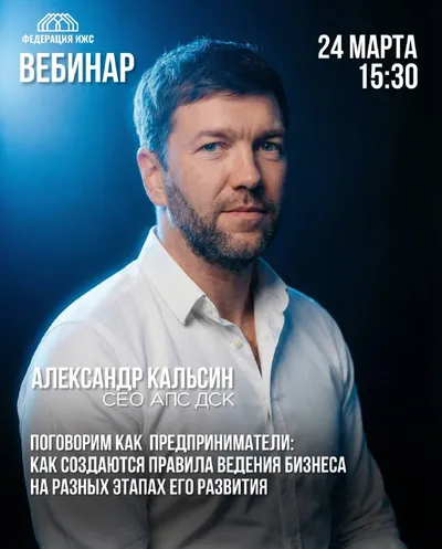 Онлайн-вебинар для участников Федерации ИЖС!❤️ 🗣24 марта | 15:30 | вторник Спикер: Александр Кальсин. СЕО АПС ДСК Тема: Поговорим как предприниматели: как создаются правила ведения бизнеса на р