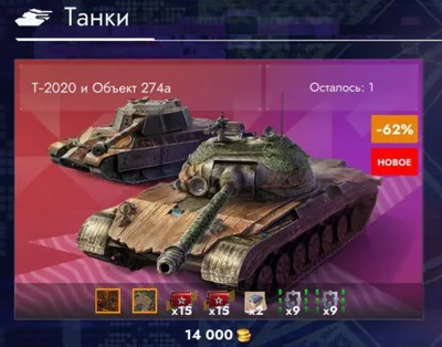 ⚡️Во внутриигровой магазин завезли набор «Т-2020 и об. 274а», за 14.000 золота(🟡).