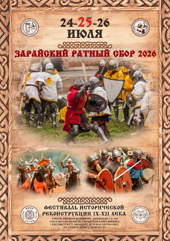 ЗАРАЙСКИЙ РАТНЫЙ СБОР 2026 24-26 июля Московская область, г. Зарайск, д.Карманово, территория Кремля им. Евпатия Коловрата. 25Га частной территории на изгибе реки Осётр. Участники: На данный момент