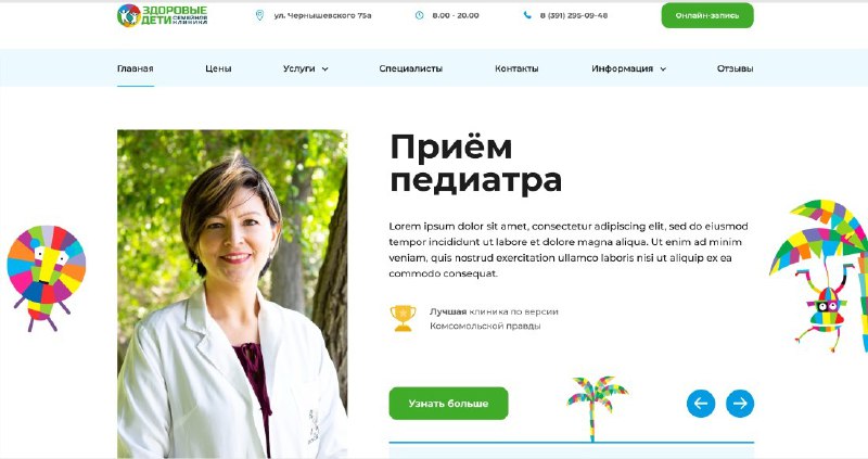 Сайт семейной клиники Язык: #ru Категория: #корпоративный Сложность: #средний #адаптив #uikit #фильтры #форма_заказа #блог