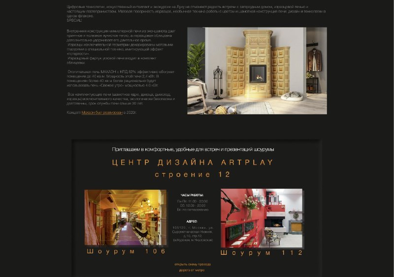 Сайт компании, занимающейся каминами Язык: #ru Категория: #корпоративный Сложность: #сложный #адаптив #uikit #фильтры #форма_заявки #блог