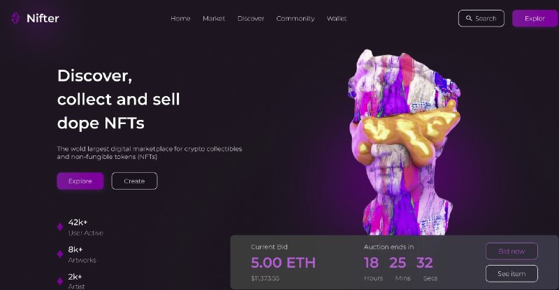 NFT коллекция Язык: #en Категория: #landing / #магазин Сложность: #легкий #uikit