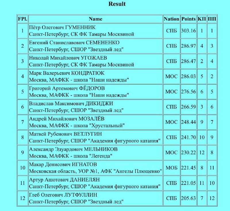 🥇Петр Гуменник выиграл золото в финале Гран-при России! 🥈Евгений Семененко стал серебряным призером! 🥉Николай Угожаев выиграл бронзу! 📊 Протоколы: https://www.fsrussia.ru/results/2526/cor2526/M