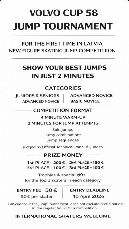 На международных соревнованиях придумали прыжковый турнир – проба произойдет на 🇱🇻 «Volvo Cup 58». За победу дадут 200 евро (около 18400р).