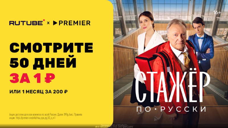 Стажёр по-русски (2025) Жанр: комедия RUTUBE х PREMIER — получи 50 дней за 1 ₽ или подписку на 1 месяц за 200₽! https://gtblg.ru/8whsF?erid=2SDnjdWZzWd Код: kinohd50ma