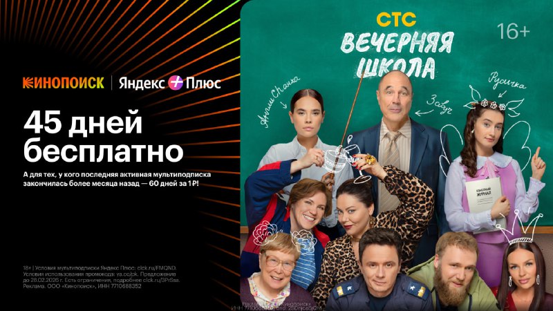 Вечерняя школа (2025) Жанр: комедия Кинопоиск — до 60 дней за 1₽ https://gtblg.ru/JDOI6?erid=2SDnjcaSjQM Код: 226X9U58UB
