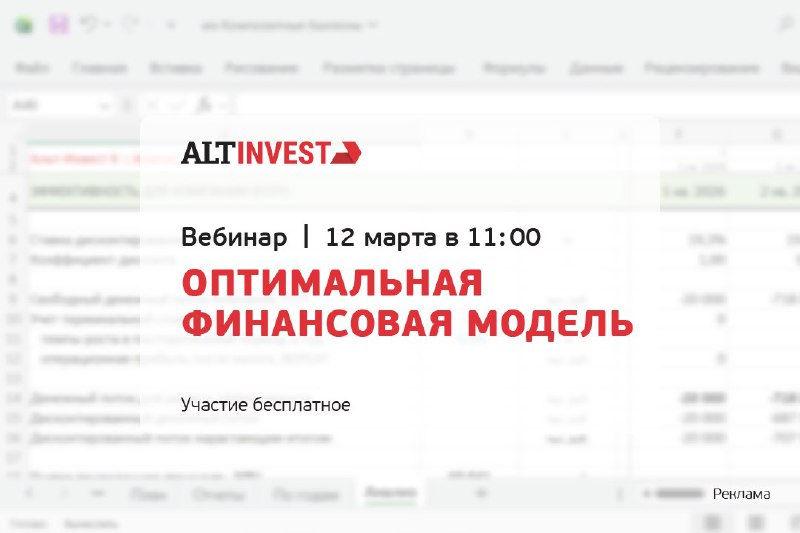 📌12 марта в 11:00 приглашаем на бесплатный вебинар «Оптимальная финансовая модель» Финансовая модель — ключевой инструмент коммуникаций между аналитиками, руководителями компании, инвесторами и кред