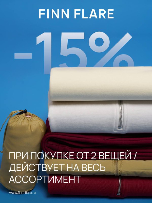 Расширяем акцию -15% на покупку от двух вещей — теперь предложение распространяется на весь ассортимент FINN FLARE! Это возможность порадовать себя подарками к празднику, приобрести позиции из шопинг