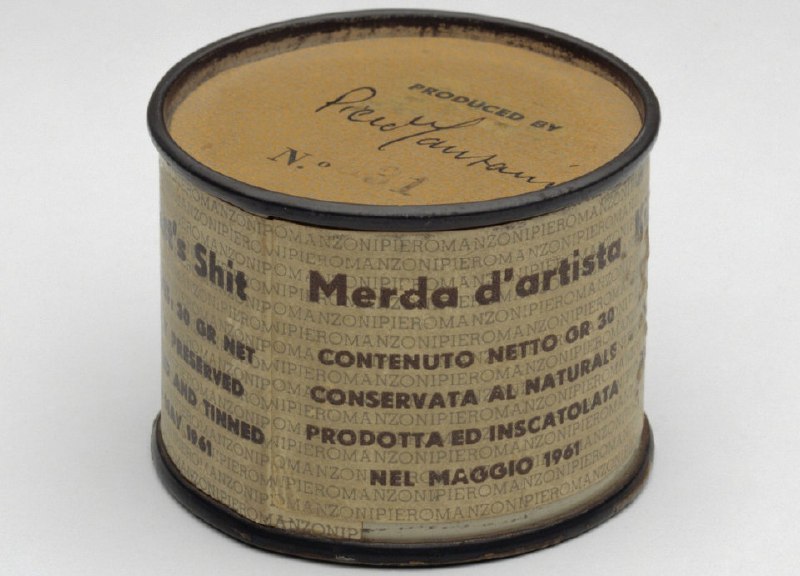 В мае 1961 года художник Пьеро Манцони выпустил 90 жестяных банок, подписанных и пронумерованных (№1–№90). На этикетке «Merda d’artista» («Дерьмо художника») была заявлена масса нетто 30 грамм. Стои