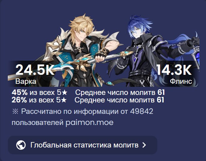 🗿 Статистика круток Варки и Флинса от paimon moe 💬 Наш чатик по геншину — тут ❗️ Правила чата — тут Дневник Неудачника 💎 #разное