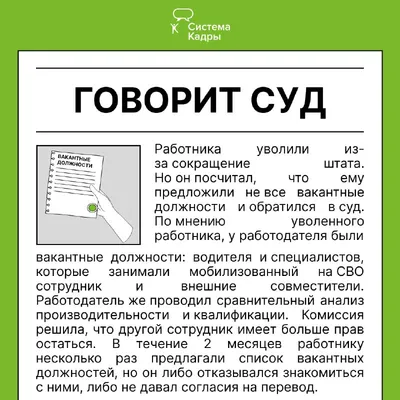 ⚖️ Суд разъяснил, должен ли работодатель при сокращении предлагать должность мобилизованного сотрудника Позиция такова: за мобилизованными сотрудниками сохраняется должность, поэтому она не является