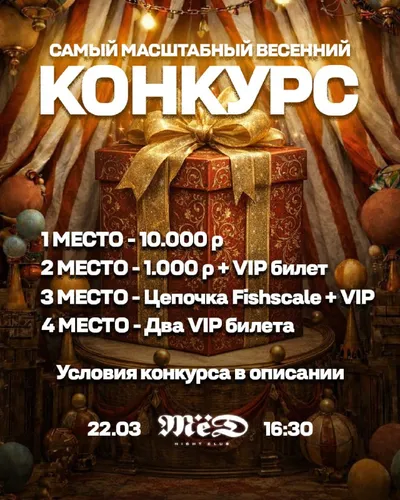 ⚠️САМЫЙ ГЛАВНЫЙ РОЗЫГРЫШ ЭТОЙ ВЕСНЫ⚠️ Красиво встречаем весну 2026🎉 💵1 место - 10.000 рублей! 💵2 место - 1.000р + 1 VIP билет! 😙3 место - Эксклюзивная цепочка Фиша + VIP! 🎫4 место - 2 VIP билета