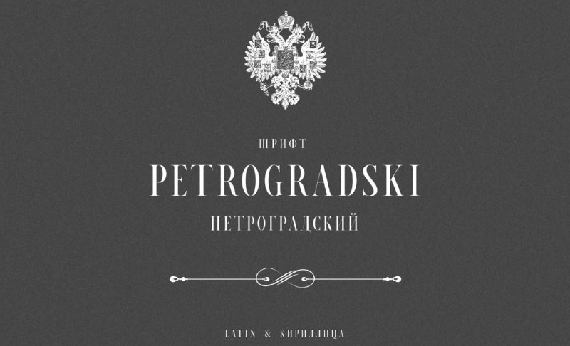 Шрифт "Petrogradski" by Stanislav Chiganov Старомодный шрифт от дизайнера из Санкт-Петербурга. Есть поддержка латинских и кириллических знаков, а также всех цифр и символов. Есть 88 глифов. Шрифт мо