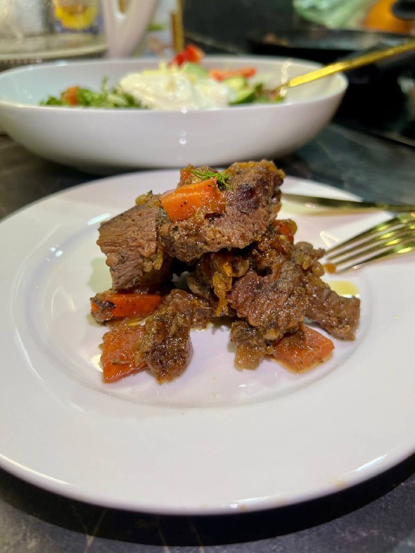 Готовлю обед для мужа Сегодня Говядина тушеная по этому рецепту Мясо - 600 г Лук 🧅 - 1-2 шт Морковь - 1 шт Соль по вкусу Приправа «Кавказская» Масло Сливочное - 30 г Мясо и овощи нарезаем к