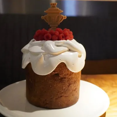 Ресторан Forest выложил (!) кулич. Почти за месяц до Пасхи. Кажется, это первый в этом году. С изюмом, желе из малины и шоколадным самоваром.