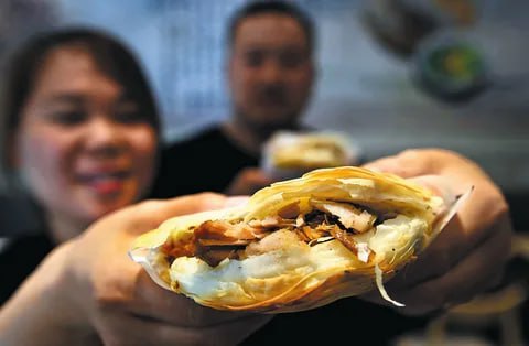Жоуцзямо – первый в мире бутерброд Жоуцзямо - популярное в китайской провинции Шаньси блюдо: мясо в лепешке мо. Этому рецепту больше 2000 лет. Уличный жоуцзямо готовят с двумя десятками специй. Сви
