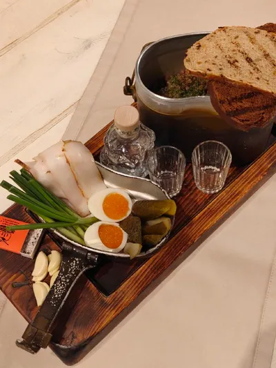 Между тем в ресторане северной кухни "Экспедиция" все течет своим чередом: публика чинно пьет настойки и водочку под строганину и жирнючий олений язык, а самые романтичные заказывают «Паек геолога»