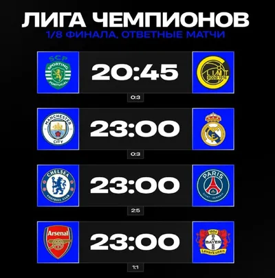 ⚽️Расписание матчей 17 марта 💙 Лига чемпионов, 1/8 финала, ответные матчи 🏆