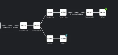 В блокчейне биткоина произошла реорганизация блоков, следовавших после #941880. Майнинг-пул AntPool добыл блок #941881, за которым последовал блок от ViaBTC. Но параллельно крупнейший пул Foundry до