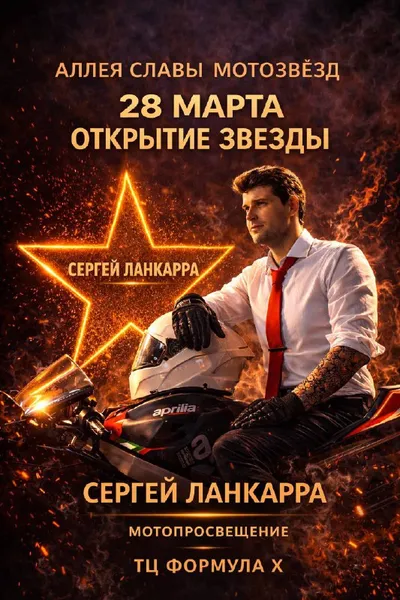 🔥 Вы сами выбрали! 28 марта на Аллее мотозвёзд в ТЦ «Формула Х» зажжётся новая звезда – Сергея Ланкарры. Номинация –«Мотопросвещение». Сергей Ланкарра – творческий псевдоним Сергея Кузнецова. Мото